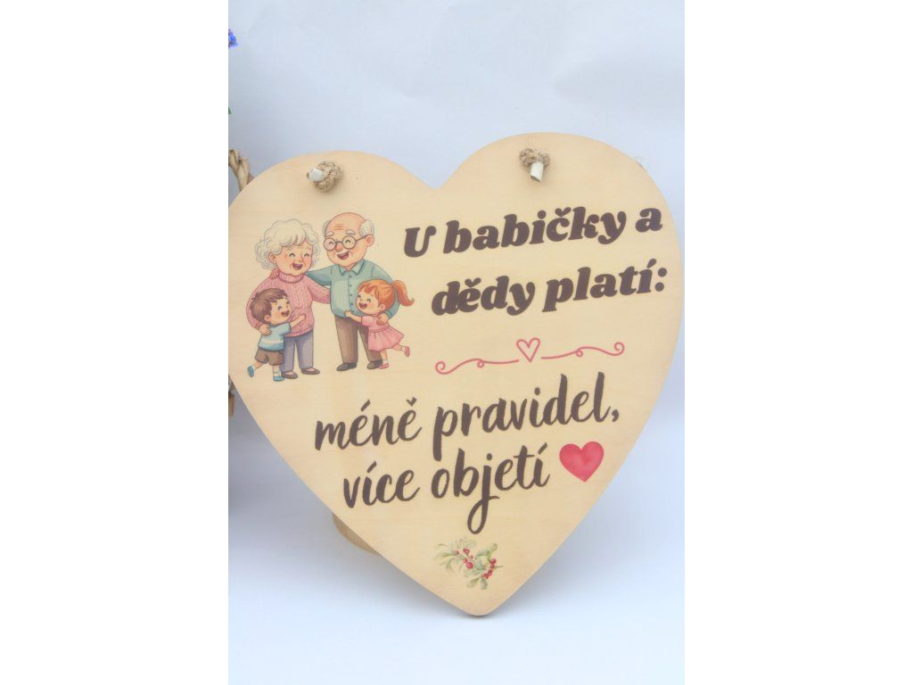 Cedulka ve tvaru srdce, která vystihuje to nejhezčí na prarodičích.
